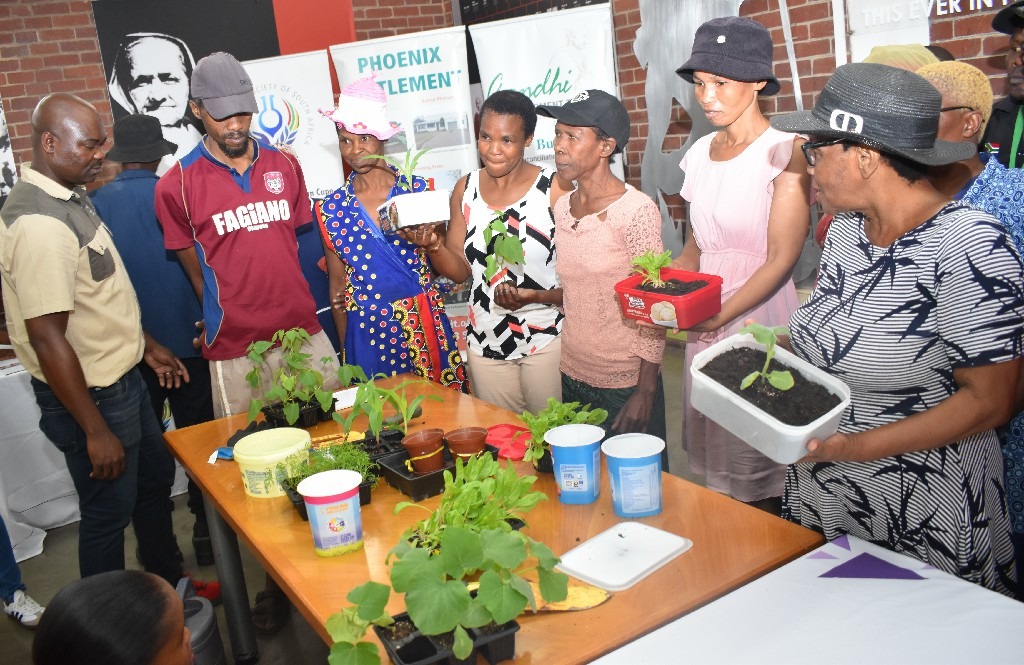 Reinforcing what some of the speakers said, students and staff from the Department of Community Extension first told the community members about the importance of practising effective urban agriculture, and then invited some members of the community to a demonstration, where Nhlakanipho Mavundla, a staff member, led the talk and a hands-on activity. “Plants, like us humans, are living things. You need to treat them well,” said Mavundla, demonstrating how transplanting is done. “Our staff and students mobilised the community with an inspiring and practical experience that highlighted how small-scale gardening can transform household nutrition and raise their level of food security,” said Professor Mkhize, who emphasized that inspiring behaviour change, building resilience, and empowering communities to take ownership of their wellbeing is vital in urban areas, where unique health and nutrition challenges are most pronounced.