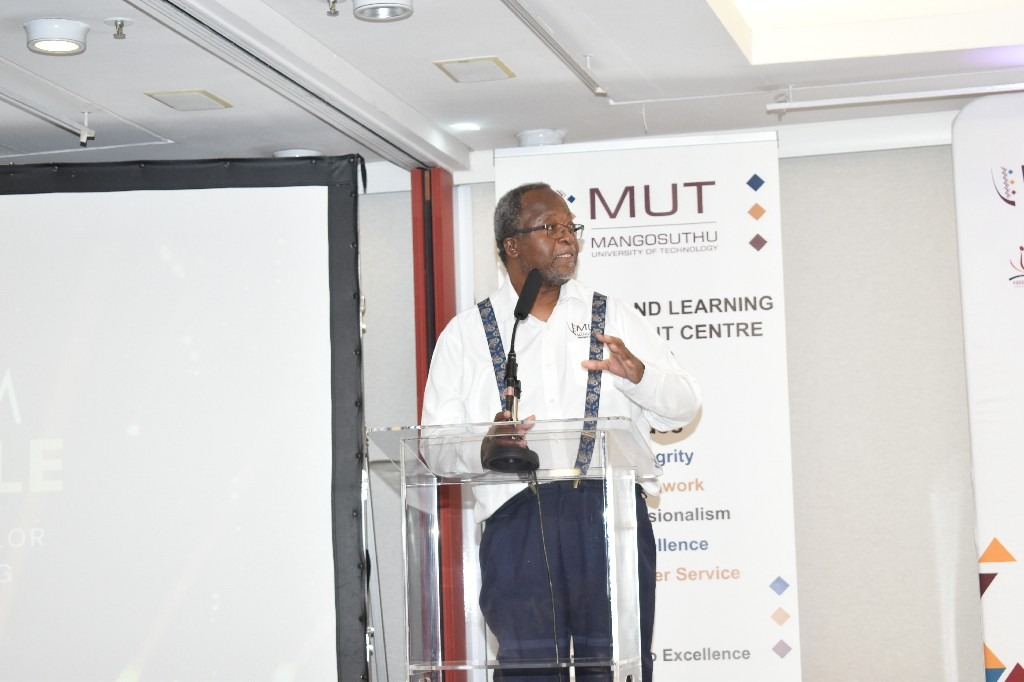 Professor Marcus Ramogale, Deputy Vice-Chancellor, Learning and Teaching, is known as one of the longest-serving DVCs at MUT, where he has held the role for 16 years, five of which he also served as acting MUT Vice-Chancellor and Principal. Before that, he was also a DVC Academic at the University of Venda, thus making him the longest-serving DVC at any South African university. In an impromptu speech, he reminded the audience that the university’s most consistent and proudest achievement has been its unwavering ability to graduate students year after year. This, he emphasised, is the very core of why MUT was founded: to provide quality, life-changing education and produce skilled graduates who uplift their communities and the country. “MUT has been consistent with its academic agenda, and as we recognise excellence in teaching and learning, we are reminded that our mission at MUT is to ensure that we give our best to the learning and teaching agenda, which is the sole reason we are here”.