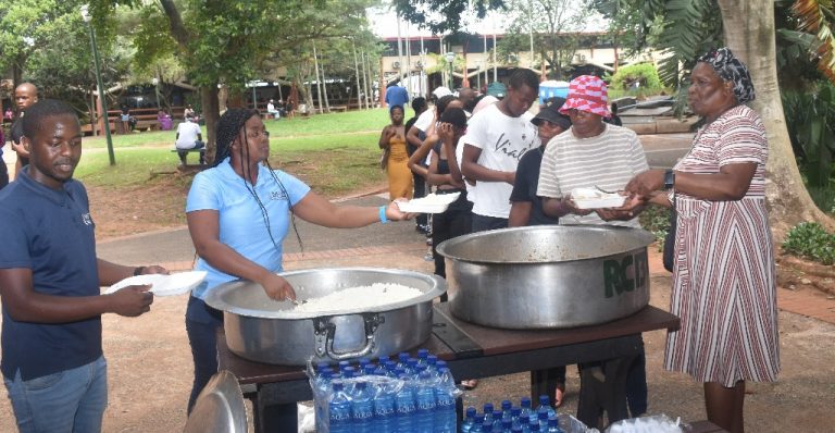 Gift of the Givers continues its commitment to provide water and cooked meals to students as the students they patiently await clearance with their registration process. The meals are prepared at one of the hotels under contract with Gift of the Givers. “Although the food was originally meant for 500 students per day, it is plenty, and each day, we serve up to 800 students. The meals this week have been served primarily by the MarComms team, with relentless support from Nikela Mchunu and Ray Zulu from Maintenance, peer helpers, and the MUT Campus Radio Team, Ntokozo Buthelezi, Awethu Kelese, and Mvelo Hadebe. We have had some staff members coming to assist. We are grateful to everyone who has put in their hands-on work on this task daily”, said Mbali Mkhize, Senior Director, Marketing and Communications. “To Gift of the Givers, we are humbled, and we trust that this spirit