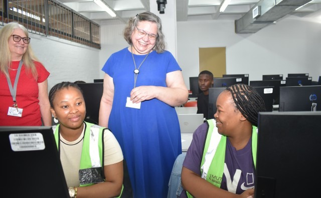 The sight of students arriving hungry, exhausted, and dehydrated has weighed heavily on Dr Anette Mienie, Acting Vice-Chancellor and Principal of Mangosuthu University of Technology. For her, leadership is lived, visible, and deeply human. In recent days, Dr Mienie has been a constant presence on campus, taking walkabouts, engaging directly with students, and listening carefully to their stories. Her emotional intelligence is unmistakable. With a quiet, motherly touch, she asked where students had travelled from, how long the journey had taken, and how long they had been waiting to be assisted. One such encounter was with Olwethu, a first-year student from KwaMhlabuyalingana in the far north of KwaZulu-Natal. Olwethu’s journey, like many others, was marked by determination and sacrifice. “We left home in the afternoon by taxi,” Olwethu explained, “then had to take a meter taxi from town to the University. We arrived at 1 am on Monday, 19 January