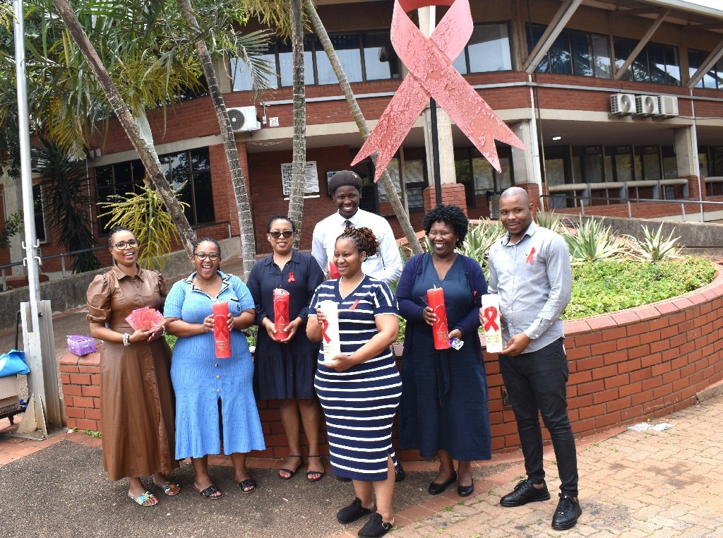 Like the rest of the world, MUT recognises 1 Dember as the World AIDS Day. World AIDS Day is an international event where global communities join hands in observing a moment to renew commitment to awareness, compassion, and collective action in confronting HIV/AIDS. On 2 December 2025, the University’s Clinic staff met at the Anniversary Lane underneath the huge AIDS ribbon, and lit candles to remind everyone that the problem still exists, and that there is still no cure for AIDS. Sister Bongiwe Sithole, Health Promoter at the Clinic, said “1 December is a call to reinforce accurate knowledge about HIV transmission, prevention, testing and treatment; support the rights and dignity of people living with HIV; and encourage testing and access to care, and reduce stigma and misinformation”. Their message is still that people should use protection; they must take all the precautions necessary to limit the spread of virus. “Our message is that abstinence is still the key. If you cannot abstain, please use protection and the preventative measures. Be faithful to your partner,” said Sister Sithole. She further reiterated that even with significant advances in treatment and prevention, the numbers are a sad reminder that HIV remains a major public health challenge worldwide.