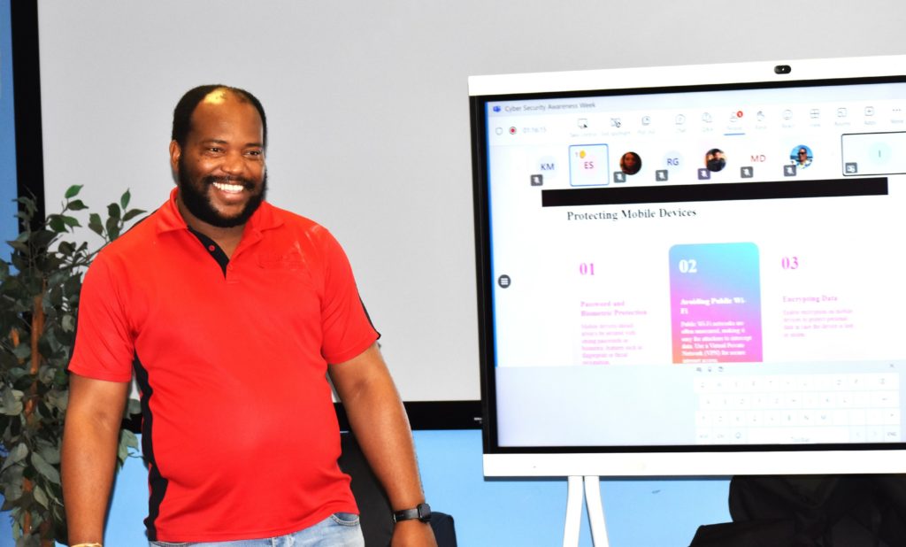 During the seventh Cyber Security Awareness Week – 14-18 October 2024, the University staff received messages, warnings and requests from several information technology professionals, all appealing to them to learn more about the cyber-criminal behaviour and take the required actions to protect the University network. Njabulo Xaba, IT Security and Governance in the Department of Information Technology and Networks (IT&N), said they would like staff to be aware of the online threats.  One of the threats is that if MUT information is compromised in any way, there will be brand reputational damage, which could be very costly. “We are appealing to staff to work with IT&N by complying with guidelines that the department gives throughout the year, not only in October,” said Xaba.