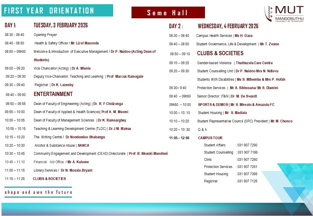 Watch MUT Student Orientation Video’s