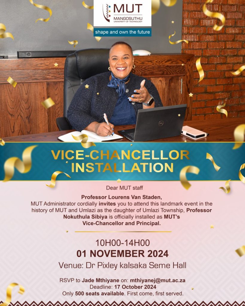 It is the first installation ceremony that is open to all MUT staff who want to be part of this university’s milestone event. Officials from the Department of Higher Education and Training, local school principals, representatives of other countries, GIZ Germany, USA represented Florida Agricultural & Mechanical University, the media, and MUT staff are expected to attend the event.